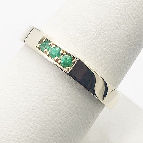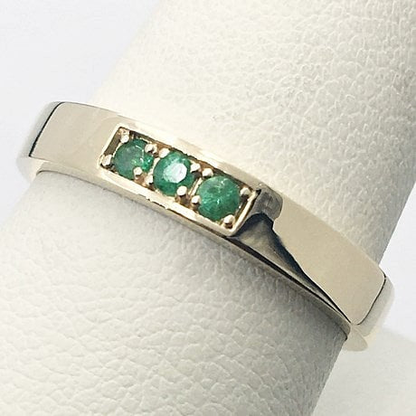 Les 3 pierre d'émeraude sont taillées rondes et font 1,7 millimètre de diamètre pour un poids total de 0,045 carat d'émeraude.
