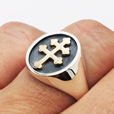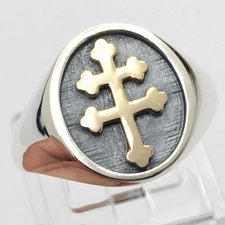 Cette bague est pensée pour une personne désireuse de porter une luxueuse bague avec croix de Lorraine, qui soit à la fois originale de par son design en argent et or avec une croix tréflée et unique de par son rendu visuel.