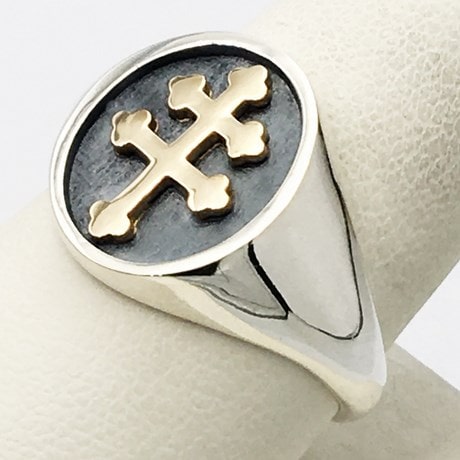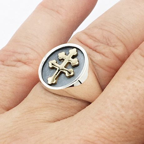 - Argent 925 et Or jaune 18 carats: Le corps de bague est en argent massif et seul la croix de Lorraine treflée est en or jaune 18 carats, avec un poids d'or de 0,5 gramme