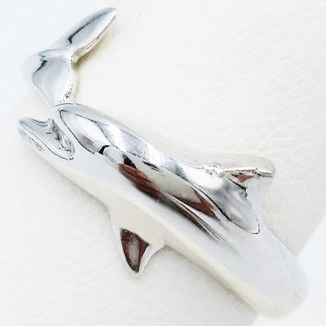 Cette bague reproduit fidèlement le véritable animal dont on peut voir les signes distinctifs, tels que le rostre, le melon , les nageoires perctorales, dorsale et caudale qui est tourné à 90° ici pour des raisons de confort.