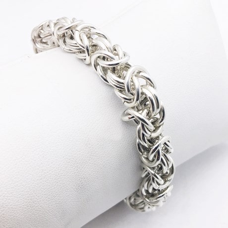 La maille royale/byzantine est une technique ancienne à l'origine incertaine, redécouverte et valorisée pour sa beauté ornementale. Bien qu’associée par son nom à l’Empire byzantin, elle est surtout un héritage stylistique qui a traversé les siècles pour devenir aujourd’hui un grand classique de la bijouterie. Son style unique le rend à la fois léger au poignet tout en étant bien visible et très confortable à porter.