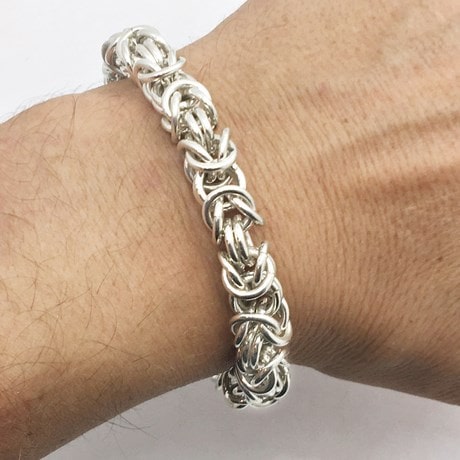 La maille royale/byzantine convient aussi bien pour les hommes que pour les femmes, portée sous forme de bracelets ou colliers. Les femmes auront tendance généralement à porter ce type de maille pour des dimensions inférieures à 6 mm en diamètre alors que les hommes la porteront de 5 millimètres ou plus en diamètre.