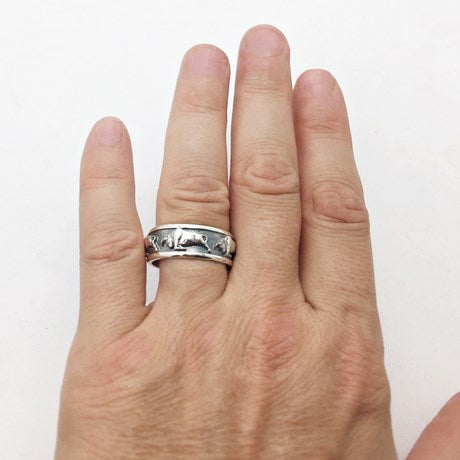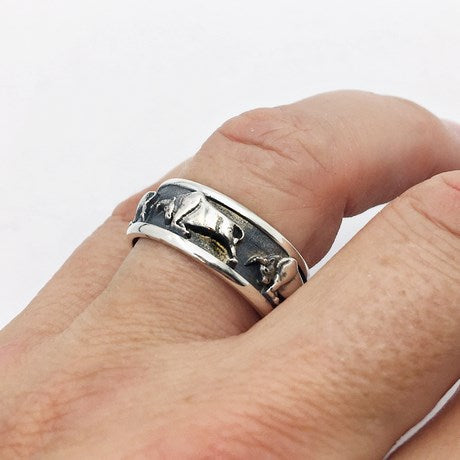 - Design imposant : Avec une largeur de 9 mm, cette bague est ornée de cinq taureaux en relief, finement détaillées et placées sur un fond noir mat pour un contraste saisissant.