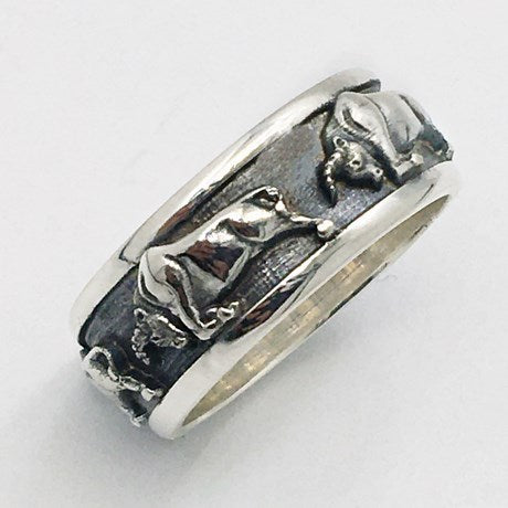 Les cinq taureaux sont disposés sur tout le pourtour de la bague, et se distinguent bien sur le fond noir oxidé de la bague.