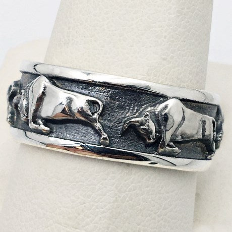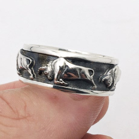 Bague taureau pour homme en argent massif.