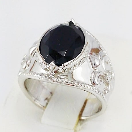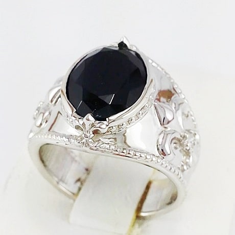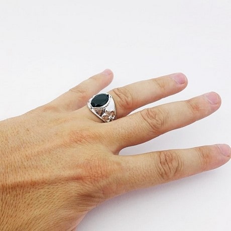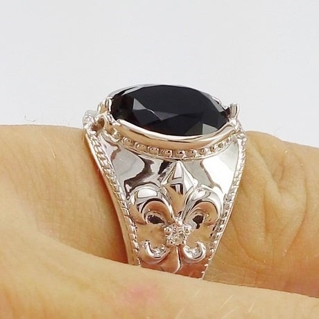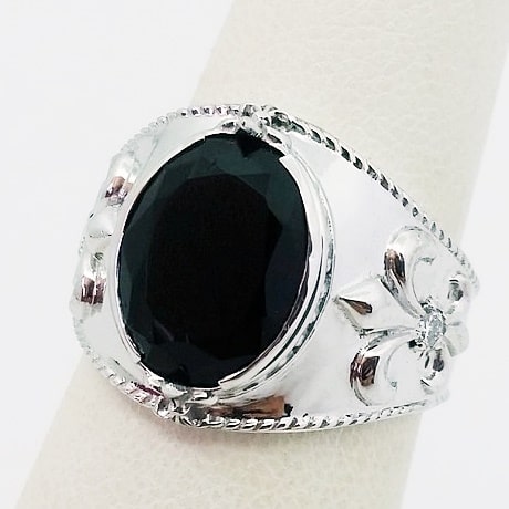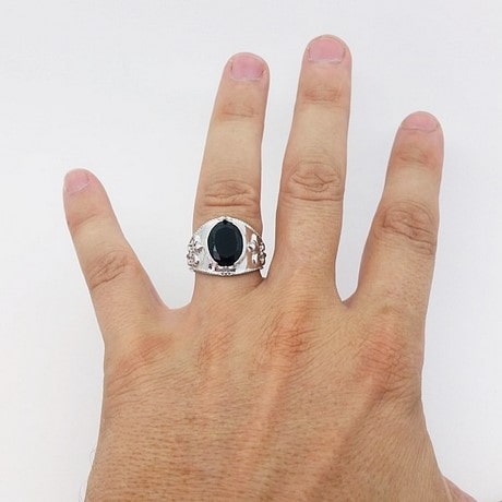 - Chevalière en argent pour homme avec onyx et diamant solitaire