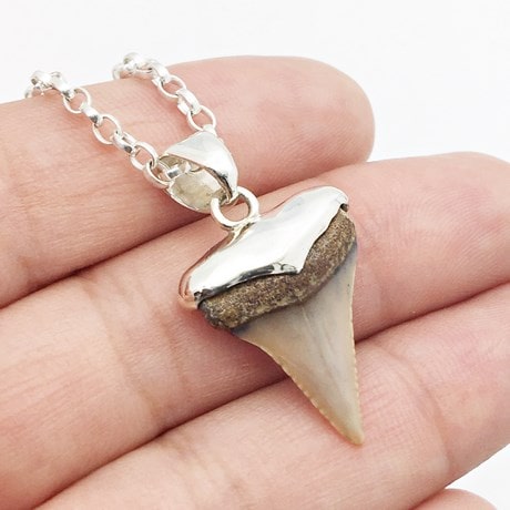 Notez que nous pouvons également faire ce type de pendentif personnalisé avec des dents de requin tigre ou de requin blanc ou des dents de requin fossilisées selon votre besoin. Contactez-nous ici